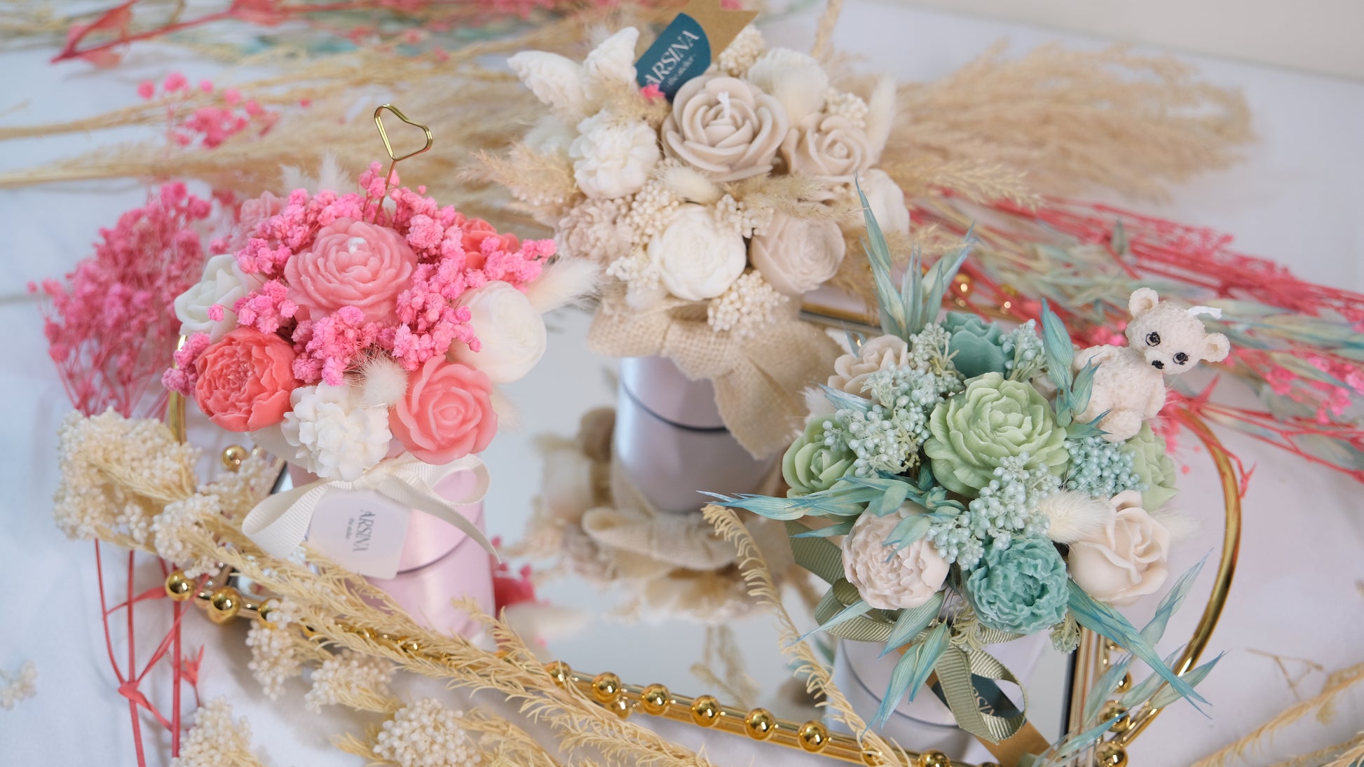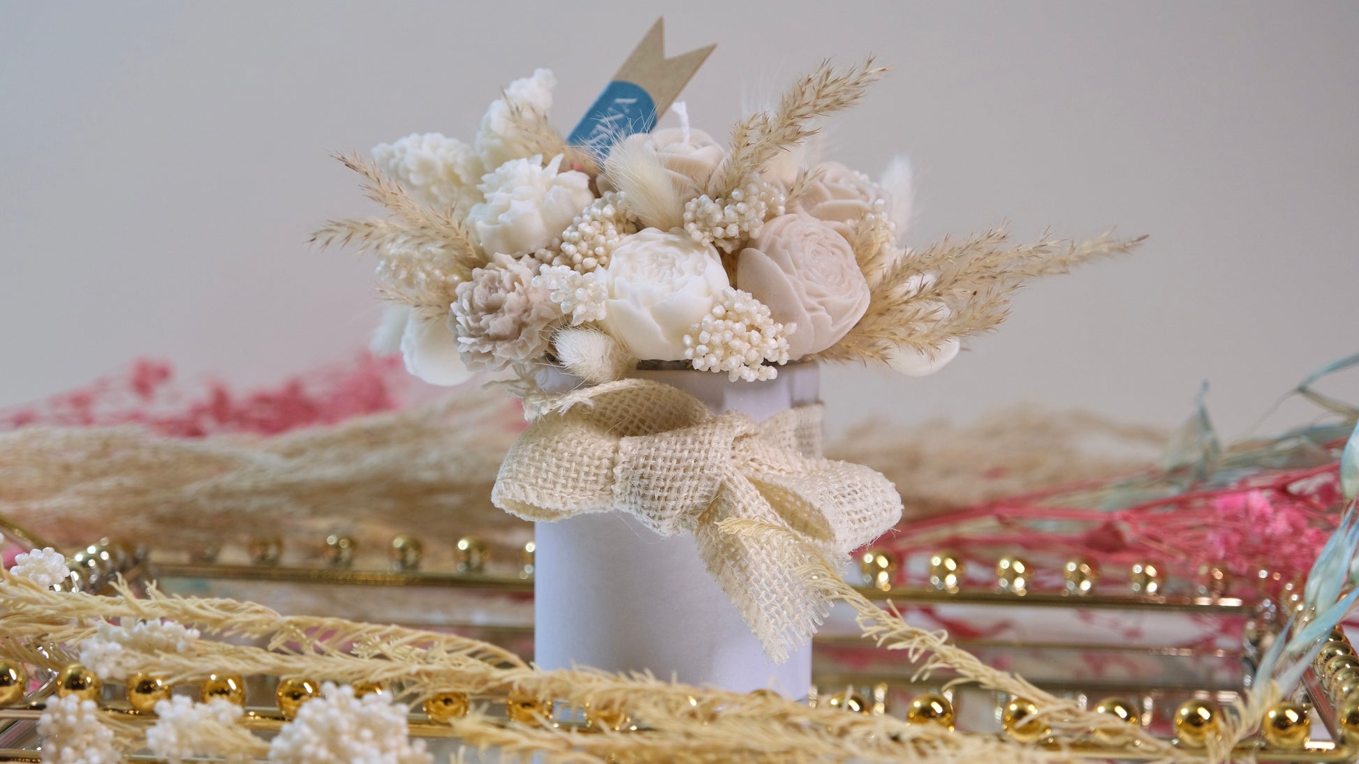 A bouquet that never fades, with a fragrance that lingers. Handcrafted and hand-poured, each decorative candle is adorned with delicate wax florals designed to stay beautiful season after season. Lightly scented to bring a gentle aura to any room, they’re packaged like an elegant floral arrangement—perfect for gifting or adding timeless charm to your home.